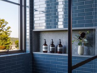 "The soft gray tones in the grout really brought out the blues and grays throughout the room, creating a cohesive and balanced look without overpowering the space," she says. "It’s those little choices that can make a big difference in pulling everything together."