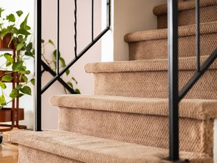 For stairs, consider a synthetic nylon twisted or cut low-pile carpet with a low pile height that offers optimal stability. Another option is a high-quality nylon Berber for its texture, durability, and stain-resistant qualities. However, check that the specific carpet is not slippery, as some polyester carpeting can be, which can increase the risk of falling. If you have pets, note that looped piles on some Berbers can catch on claws or snag.
