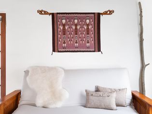 Using Velcro to hang your area rug on the wall is currently the method preferred by many museums, including The Textile Museum. This method can be used on heavy-weight rugs with success, and without causing damage to the rug.