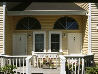 Besides a shared wall, the two units within a duplex sometimes share other areas as well. These can include a front porch, a driveway or parking lot, or a backyard that's open instead of being divided with a fence. The units generally share the same floor plan and their facade is identical on both unit exteriors for visual continuity.