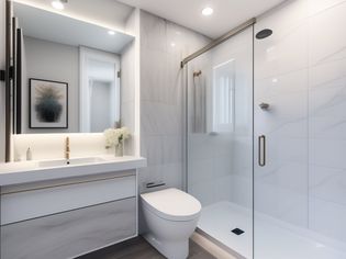 “Consider a bifold shower door to conserve every bit of square footage you have,” Lynch says. “This is particularly helpful when navigating around tight doorways and plumbing.”